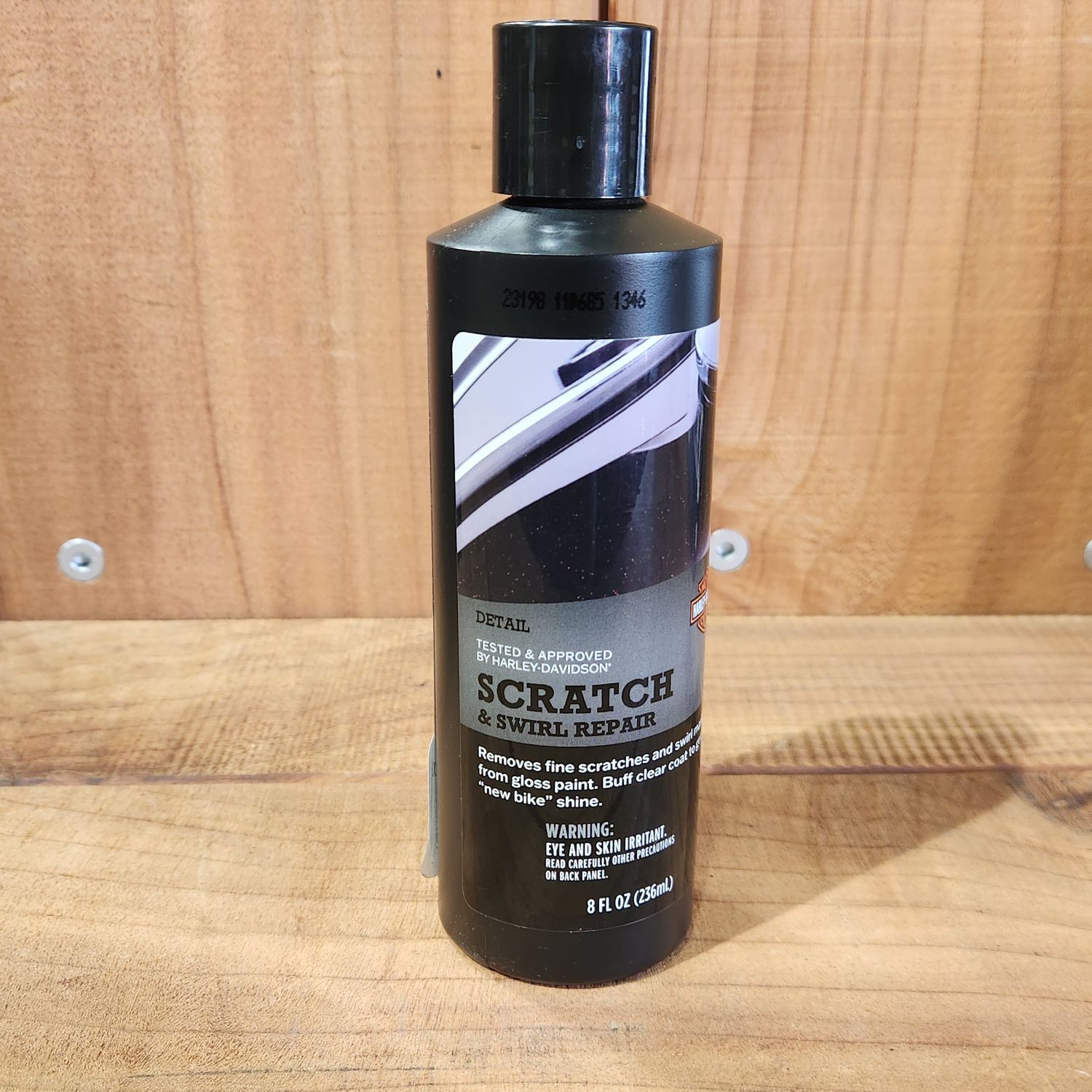 Formulated to remove fine scratches and swirl marks from gloss paint, this unique compound contains nonrigid abrasives that provide good initial leveling action on clear coat and become less aggressive while being buffed. This staging of grit size provides the benefits of a several step process in one convenient bottle and leaves your clear coat with a new bike shine. Biodegradable. 8 fl oz (236 ml) Bottle.